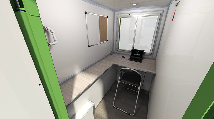 Despite being the most sustainable eco-friendly welfare cabins in the market today, Deep Green units offer a more ‘high-end’ than ‘hairshirt’ experience. In fact, they are more highly specified than almost all other welfare available, with luxury finishes such as catering-grade stainless steel worktops, hygienic no-touch low-power hand dryers, an abundance of USBs and plug sockets plus tasteful chrome fittings throughout.