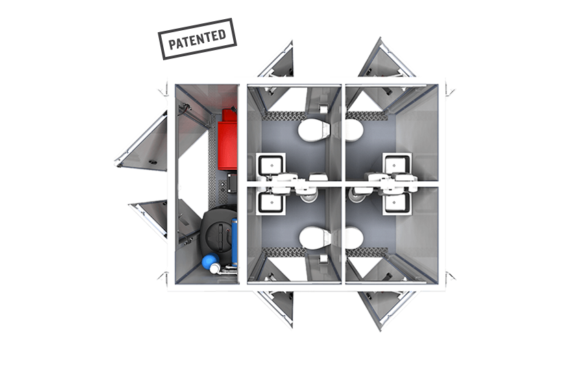 Our Toilet Space 2+2 units are the ultimate in convenience. One unit caters for four times as many people as the traditional 1-person plastic cubicle meaning less time and money spent on delivery, deployment and maintenance.